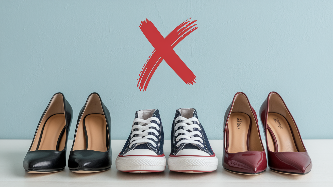 ❌ 하이힐, 슬리퍼 (발 보호 부족 & 굳은살 유발)