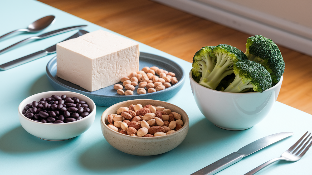 두부, 콩류, 시금치, 브로콜리, 견과류 등으로 단백질, 철분 충분히 보충 가능합니다.
