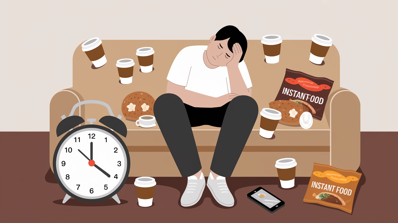 - 불규칙한 식사, 편의점·배달 위주 식단