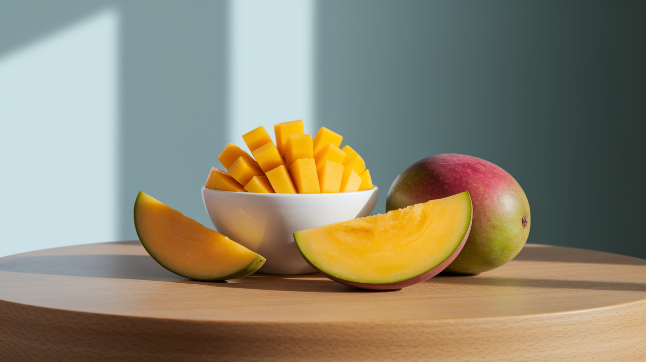 망고는 열량이 높아 보이지만 실제로는 100g당 약 60kcal 정도로 부담이 적어요.
