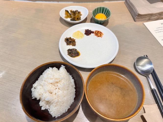 국이랑 밥이랑 접시, 김치같은 것 주시고