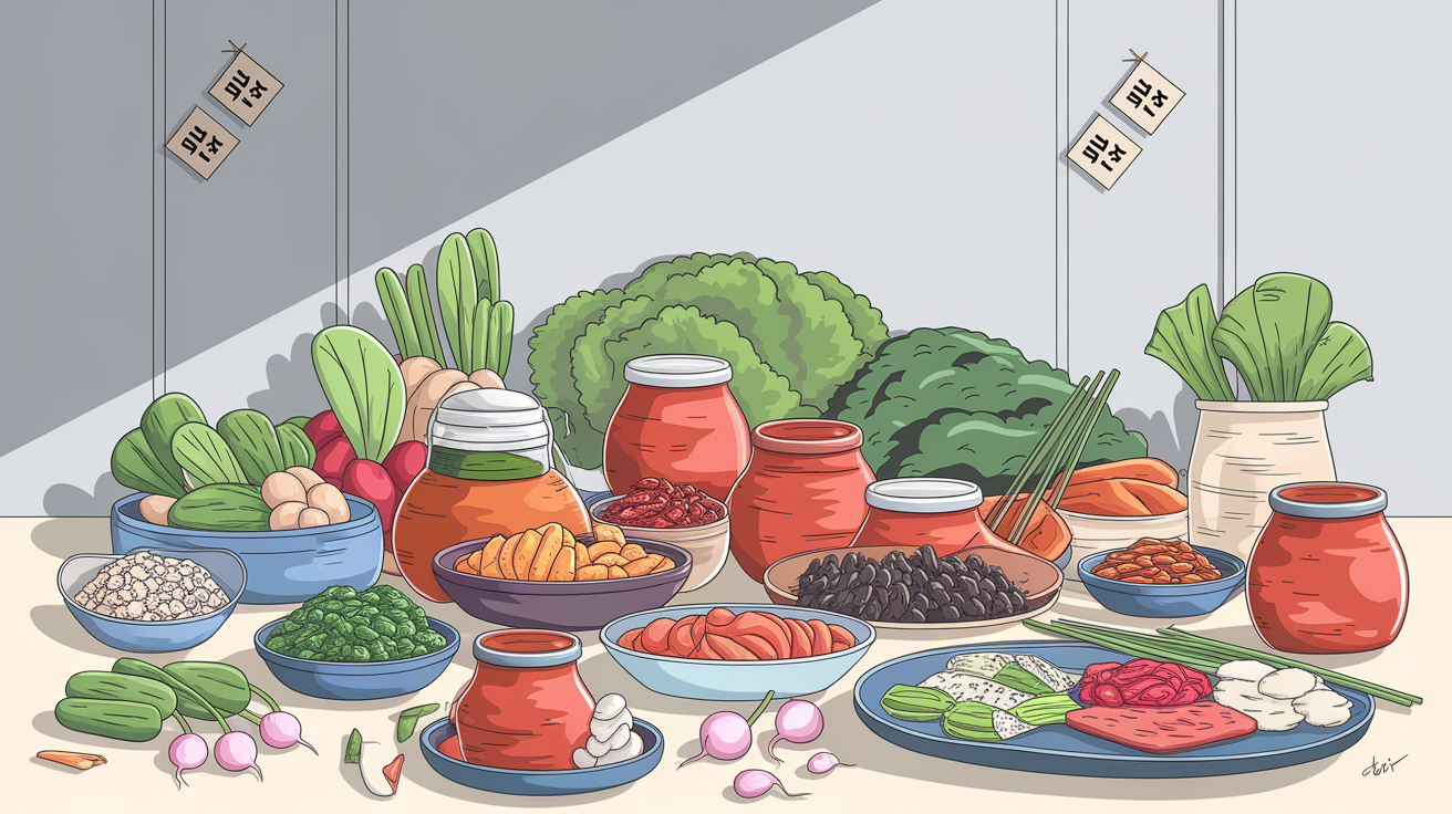✅ 김치, 요거트, 된장, 청국장, 사우어크라우트 같은 발효식품을 꾸준히 먹으면 장내 유익균이 늘어나요.